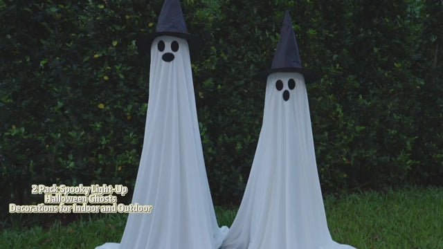 - 👻Halloween Outdoor Decorations:Trick or treat, it's time to deck the halls and yard with Halloween decorations! These two outdoor Halloween ghost decorations are perfect for adding a chill to your patio, party, garden or lawn. Each ghost is made of sturdy material that is easy to set up and take down after the holiday.
